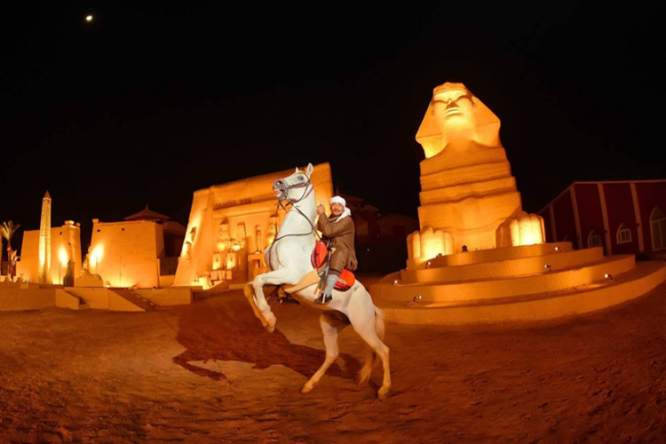 Experience a stunning mix of oriental architecture, colorful domes, pharaonic legends, and Bedouin traditions in a grand open-air theater. Enjoy the legendary sound & light show, horse acrobatics, and traditional dance performances that bring ancient tales like Isis and Osiris and Sindbad to life, The Slave Market, and The Oriental Marriage Ceremony.